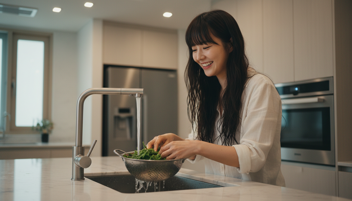 채취해온 두릅은 밑동의 딱딱한 부분과 갈색 껍질을 제거하고 흐르는 물에 씻어줍니다. 두릅에는 소량의 독성 성분이 있어 반드시 끓는 물에 살짝 데쳐서 먹어야 합니다. 30초~1분 정도 데친 후 찬물에 헹궈내면 쓴맛이 빠지고 아삭한 식감이 살아납니다.