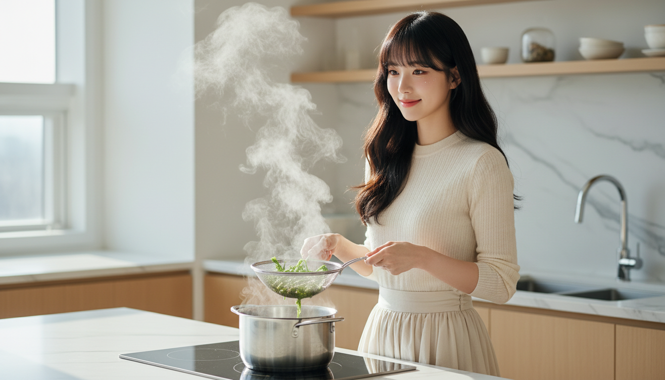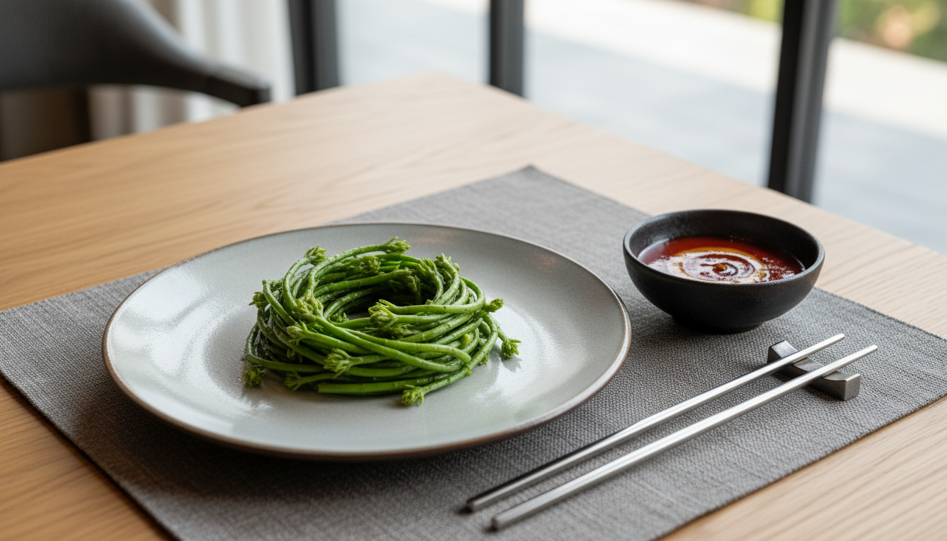 채취한 두릅은 밑동의 단단한 부분을 칼로 조금 잘라내고, 겉껍질을 살짝 벗겨 다듬어 줍니다. 그다음 끓는 물에 소금을 약간 넣고 30초~1분 정도만 살짝 데쳐야 쓴맛은 줄고 아삭한 식감과 향은 살아납니다. 너무 오래 데치면 물러지고 영양소도 손실됩니다.