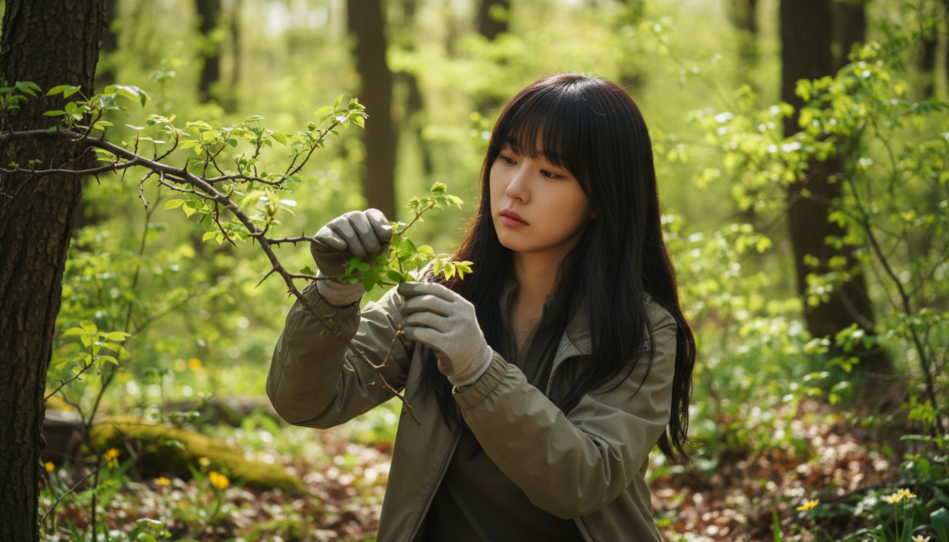 중요한 건 가장 위에 있는 꼭대기 순 하나만 채취하는 것입니다. 아래쪽 곁순까지 모두 따면 그해 나무가 더 이상 자라지 못해 다음 해 두릅을 기대할 수 없게 됩니다. 지속 가능한 채취가 자연을 지키는 길이에요. ✅