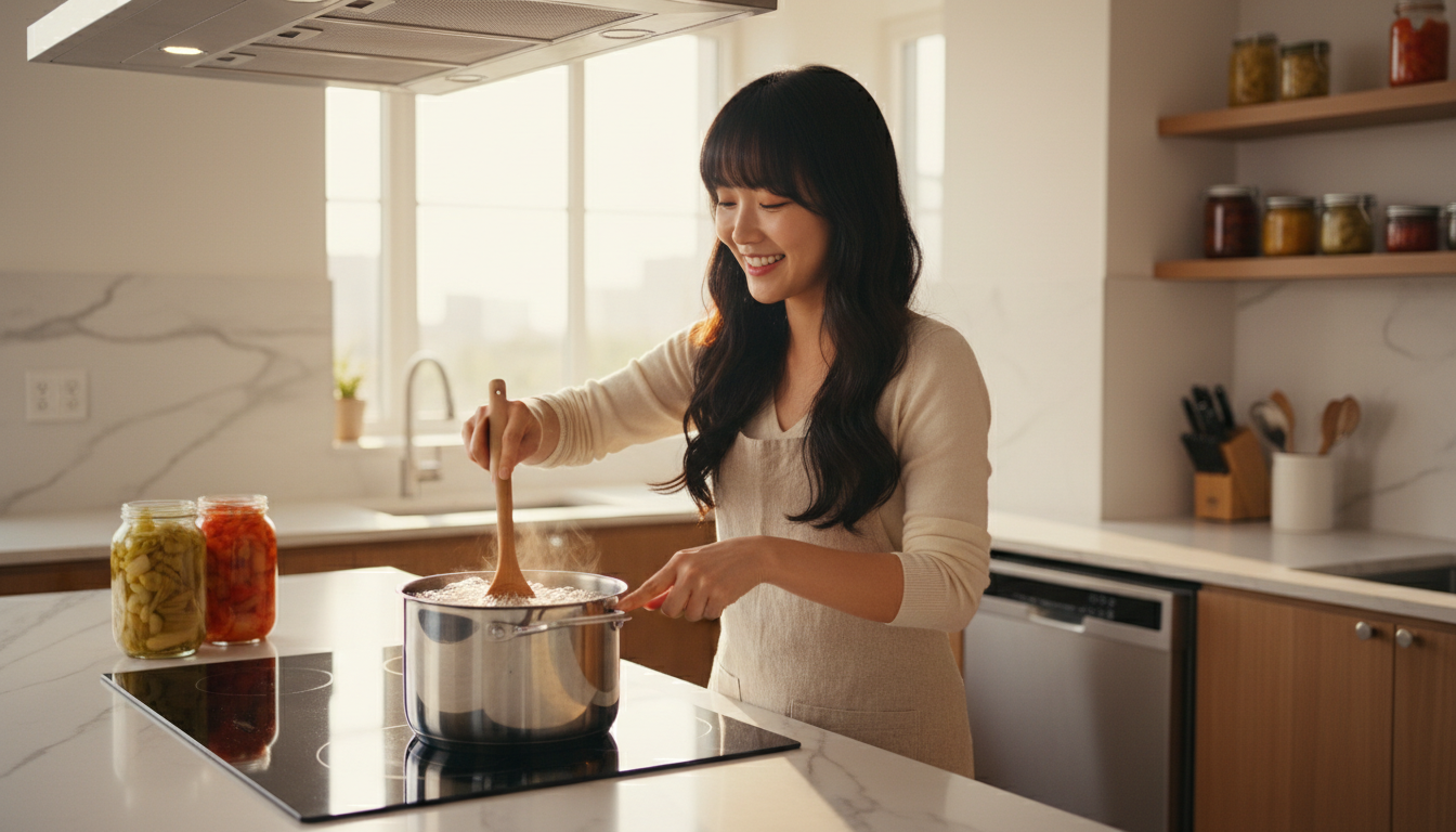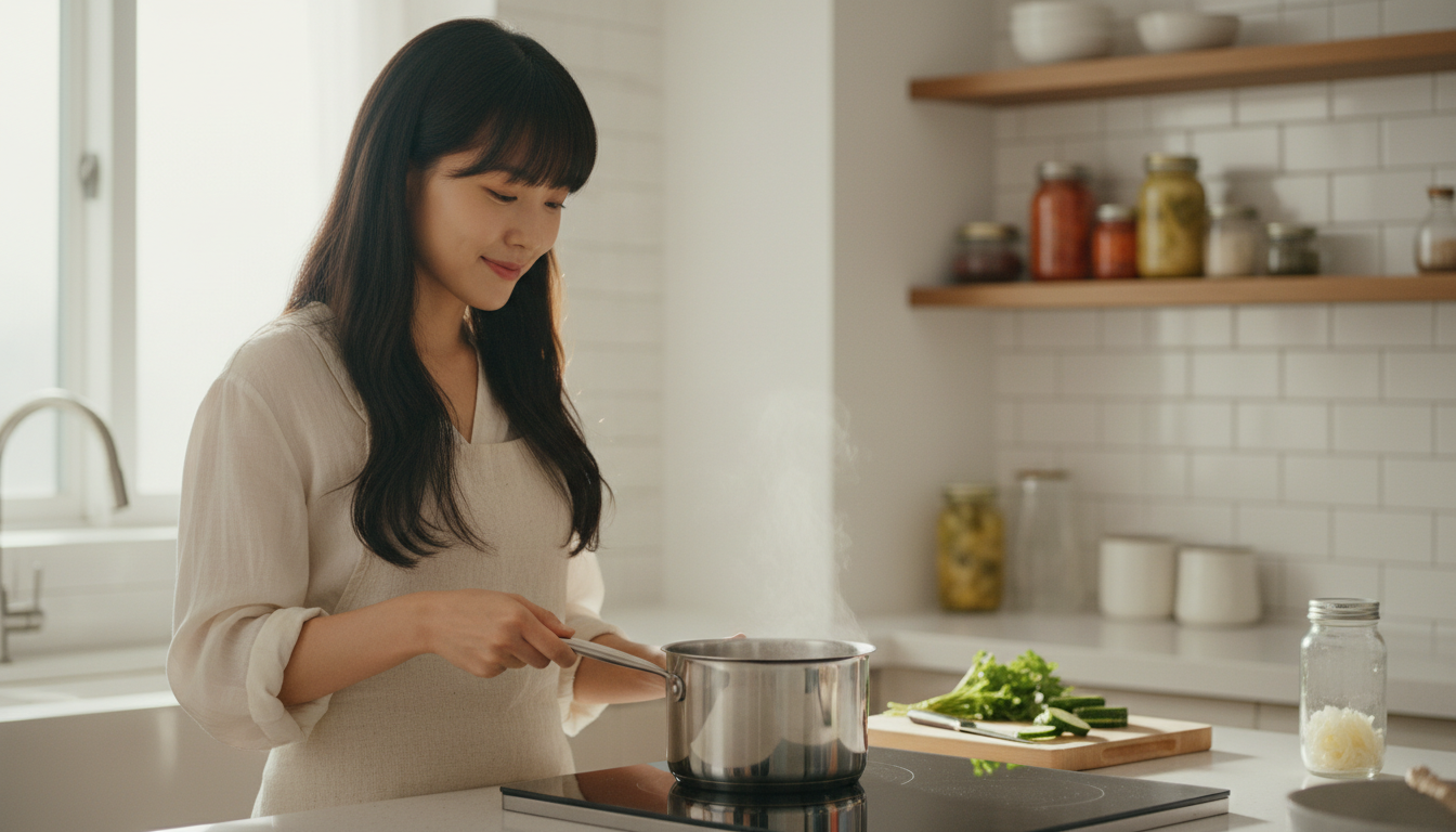 2단계 - 절임물 끓이기: 냄비에 간장, 식초, 설탕, 물을 모두 넣고 중불에서 설탕이 완전히 녹을 때까지 한 번 끓입니다. 팔팔 끓어오르면 불을 끄고 잠시 식혀주세요. 절임물이 너무 뜨거운 상태에서 바로 부으면 두릅이 물러질 수 있습니다.