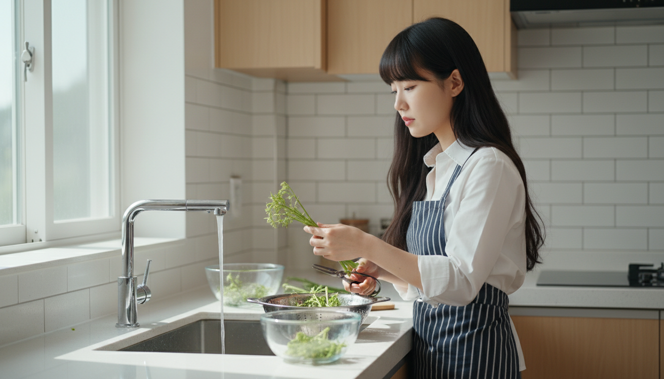 손질할 때는 밑동의 딱딱한 껍질을 살살 벗겨내고, 뾰족한 가시는 칼 뒤쪽으로 살짝 긁어 제거합니다. 이후 흐르는 물에 깨끗이 씻어서 준비하면 됩니다.
